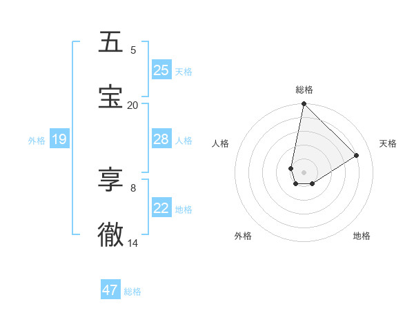 五宝 享徹さんを姓名の画数から五運を鑑定