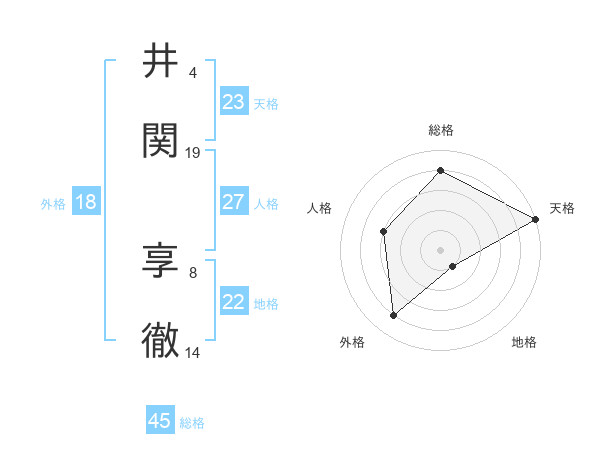 井関 享徹さんの総格は45画の4点!