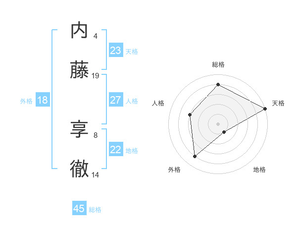 内藤 享徹さんの総格は45画の4点!