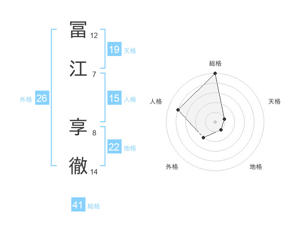 冨江 享徹さんを姓名の画数から五運を鑑定