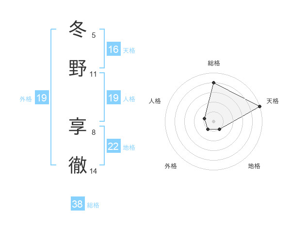 冬野 享徹さんを姓名の画数から五運を鑑定