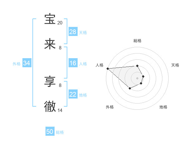 宝来 享徹さんを姓名の画数から五運を鑑定