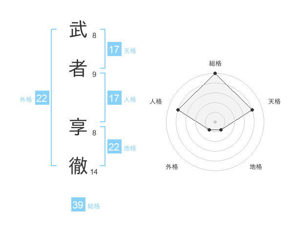 武者 享徹さんの総格は39画の5点!