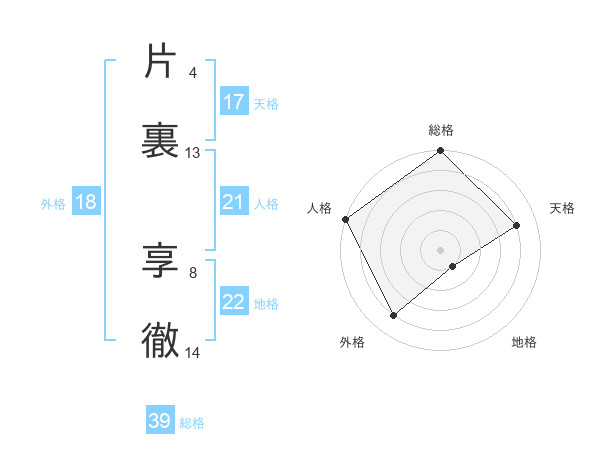 片裏 享徹さんを姓名の画数から五運を鑑定