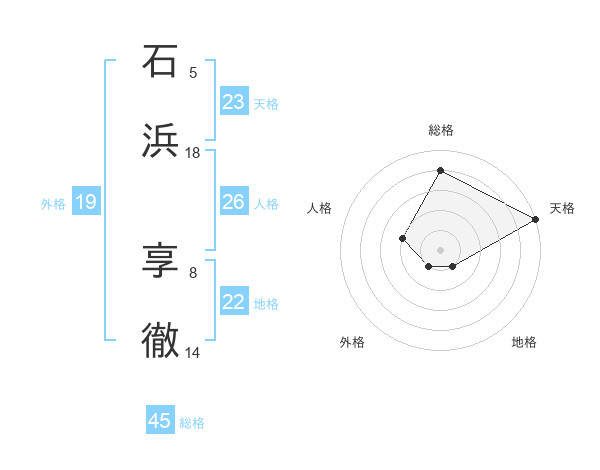 石浜 享徹さんの総格は45画の4点!