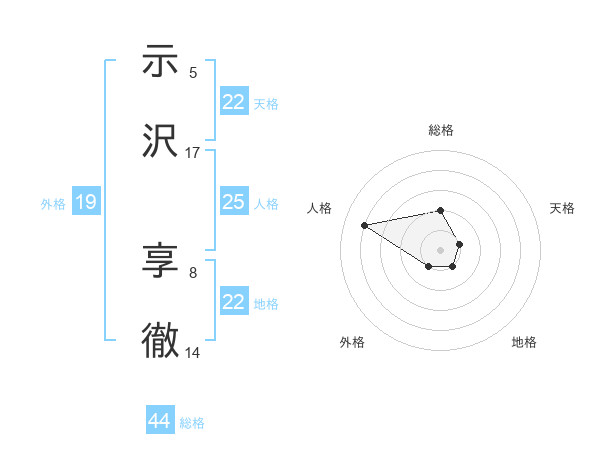 示沢 享徹さんの地格は22画の1点!