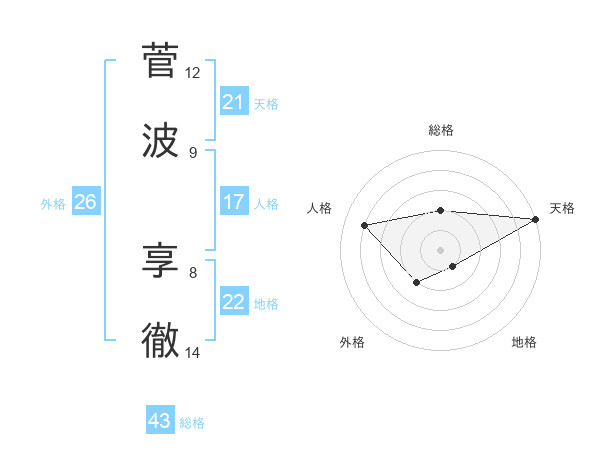 菅波 享徹さんの天格は21画の5点!
