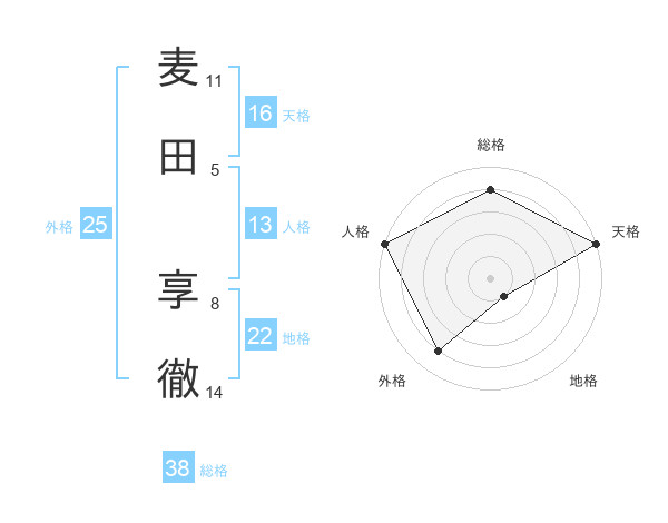 麦田 享徹さんを姓名の画数から五運を鑑定