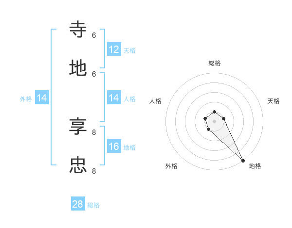 寺地 享忠さんを姓名の画数から五運を鑑定
