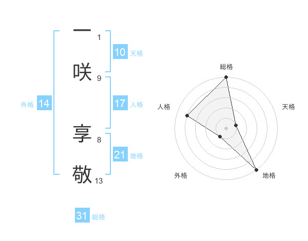 一咲 享敬さんの総格は31画の5点!
