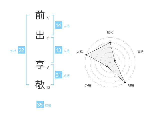 前出 享敬さんの総格は35画の4点!