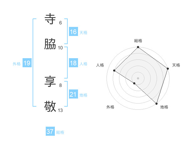 寺脇 享敬さんを姓名の画数から五運を鑑定