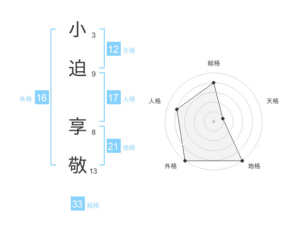 小迫 享敬さんを姓名の画数から五運を鑑定