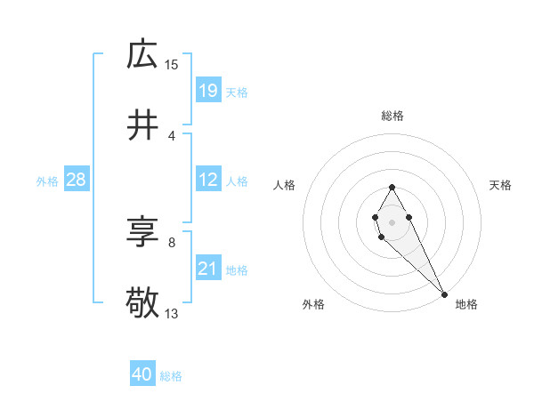 広井 享敬さんの地格は21画の5点!