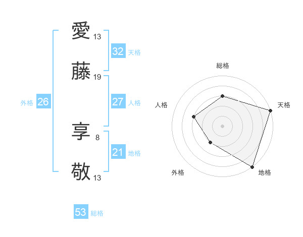 愛藤 享敬さんを姓名の画数から五運を鑑定