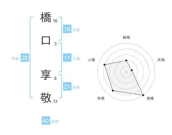 橋口 享敬さんの天格は19画の1点!