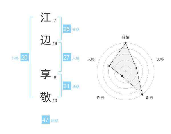 江辺 享敬さんを姓名の画数から五運を鑑定