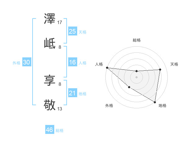 澤岻 享敬さんを姓名の画数から五運を鑑定