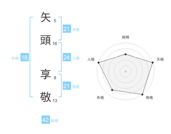 矢頭 享敬さんの天格は21画の5点!