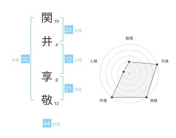 関井 享敬さんの総格は44画の2点!