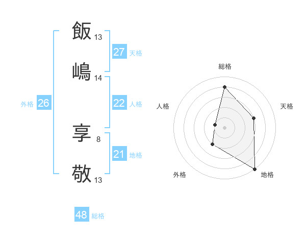 飯嶋 享敬さんの総格は48画の4点!