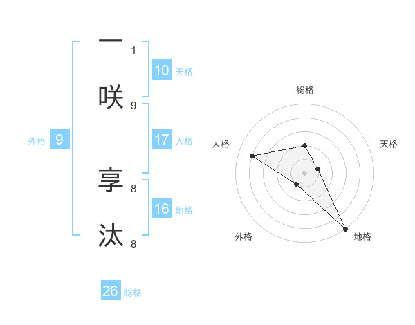一咲 享汰さんを姓名の画数から五運を鑑定