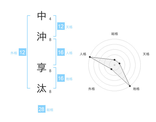 中沖 享汰さんの総格は28画の1点!