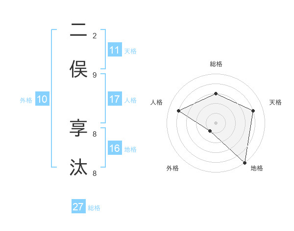 二俣 享汰さんの天格は11画の4点!