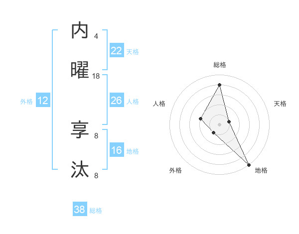 内曜 享汰さんの総格は38画の4点!