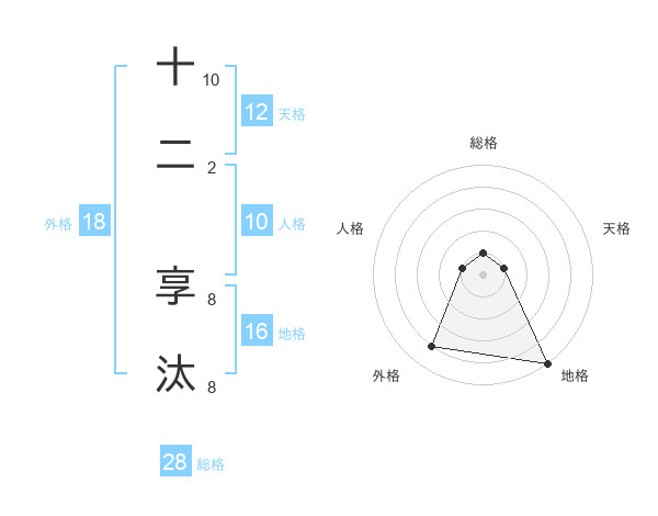 十二 享汰さんの総格は28画の1点!