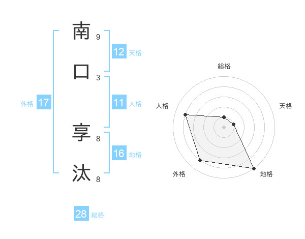 南口 享汰さんの総格は28画の1点!