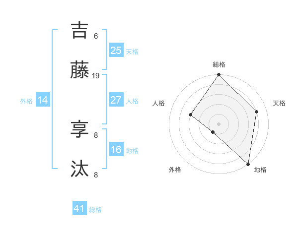 吉藤 享汰さんの天格は25画の4点!