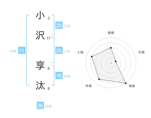 小沢 享汰さんの人格は25画の4点!
