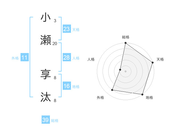 小瀬 享汰さんの総格は39画の5点!