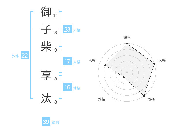 御子柴 享汰さんの天格は23画の5点!
