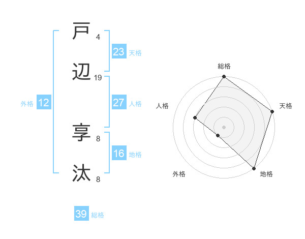 戸辺 享汰さんの総格は39画の5点!
