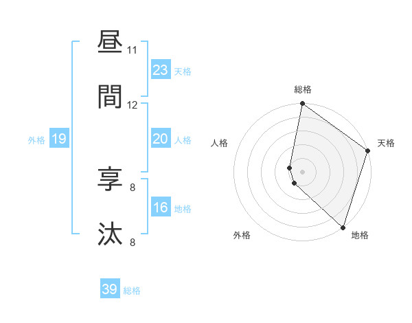 昼間 享汰さんを姓名の画数から五運を鑑定