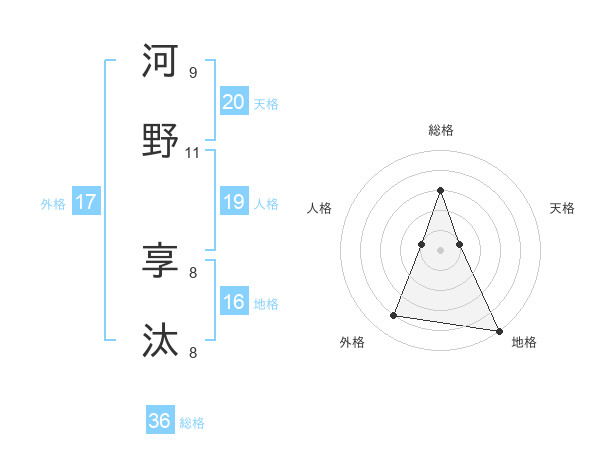 河野 享汰さんの外格は17画の4点!