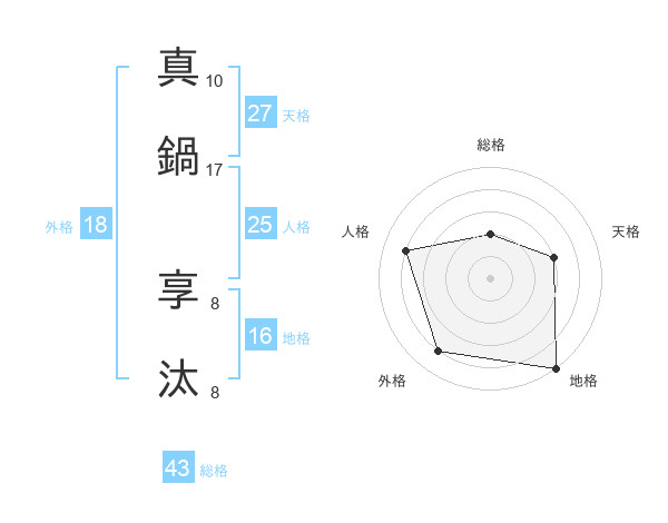 真鍋 享汰さんの総格は43画の2点!