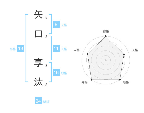 矢口 享汰さんを姓名の画数から五運を鑑定