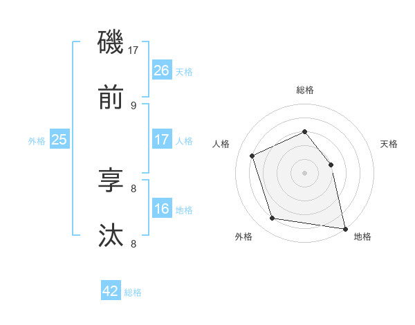 磯前 享汰さんを姓名の画数から五運を鑑定