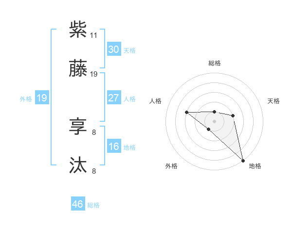 紫藤 享汰さんを姓名の画数から五運を鑑定