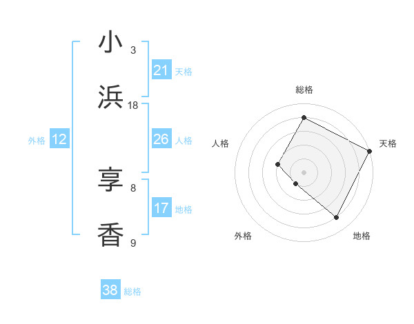 小浜 享香さんの天格は21画の5点!