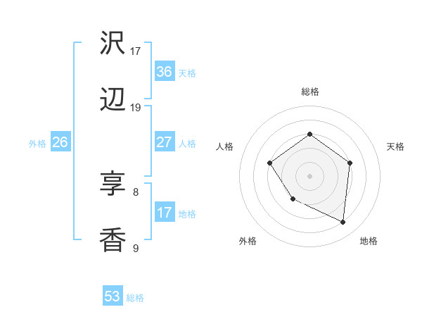 沢辺 享香さんを姓名の画数から五運を鑑定