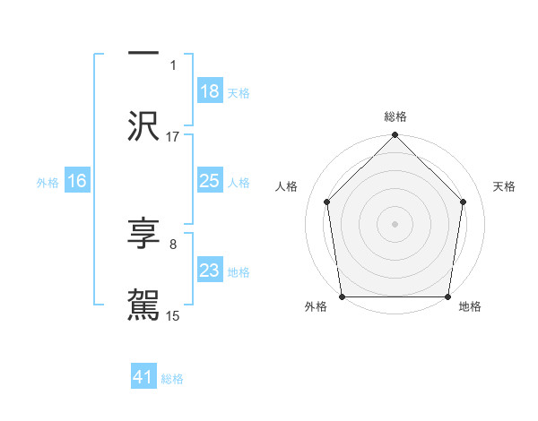 一沢 享駕さんを姓名の画数から五運を鑑定