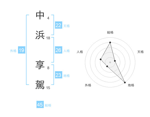 中浜 享駕さんを姓名の画数から五運を鑑定