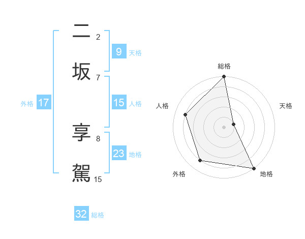 二坂 享駕さんの総格は32画の5点!