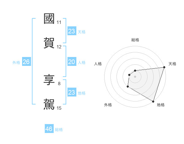 國賀 享駕さんを姓名の画数から五運を鑑定