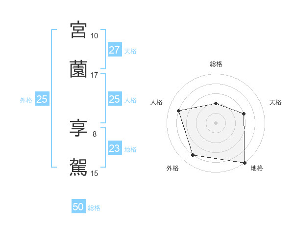 宮薗 享駕さんの総格は50画の2点!