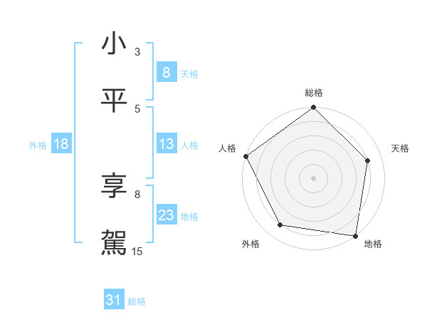 小平 享駕さんの総格は31画の5点!